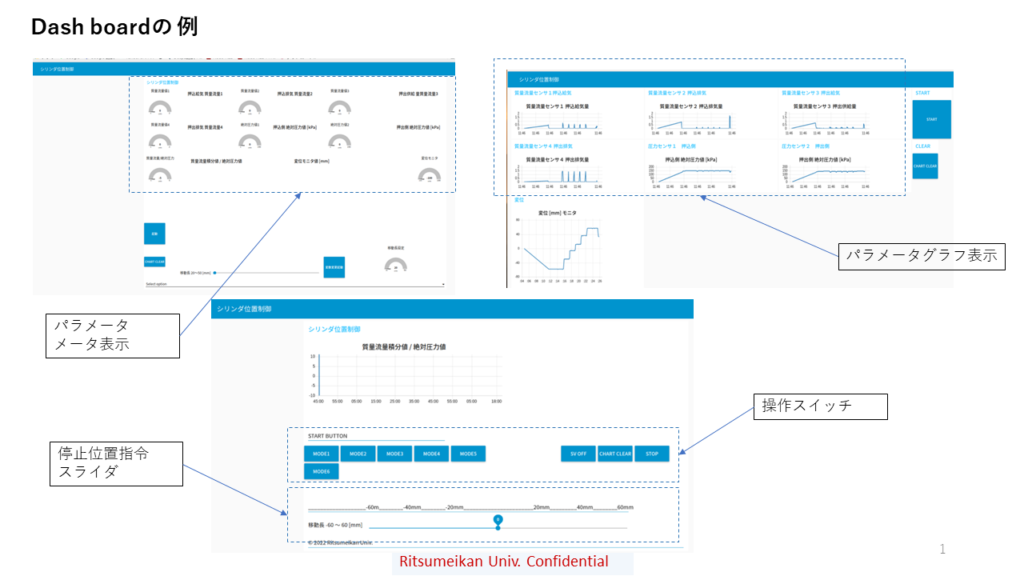 ダッシュボード上のスライダーでシリンダの停止位置を指定し、MQTT通信でPythonプログラム2に送信