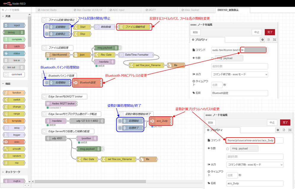 図A-1にNode-REDのフローと再利用時に変更が必要な個所を示す。