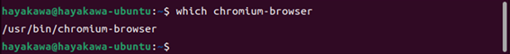 念のために、chromium-browserがインストールされているパスを調べます。