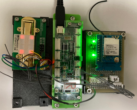 IM920sLとR-MSMとCO2センサMZ-14Bの接続の写真を次に示します。