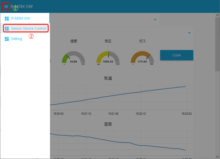 ② 出てきたメニューから「Sensor Device Control」をクリックします。