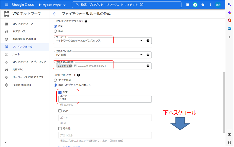 既存のルール”allow-node-red-access”にポート 1883を追加します。