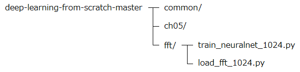 実行時には、以下の様なディレクトリ構成にしてください。ディレクトリ”ch05”と”common”は、参考本のサンプルプログラムのディレクトリです。