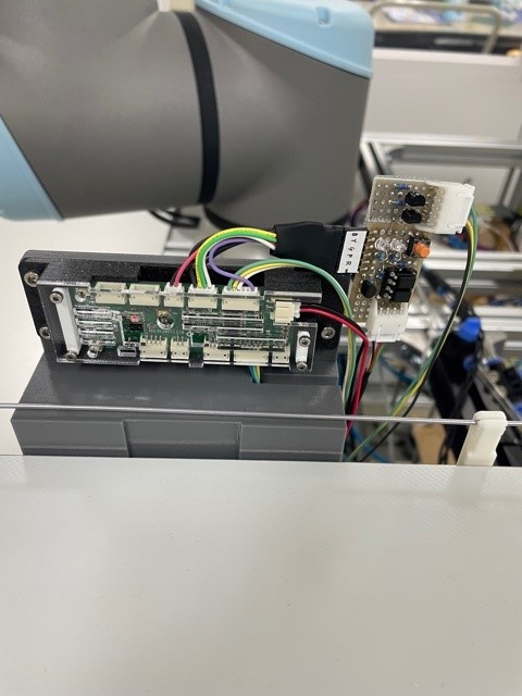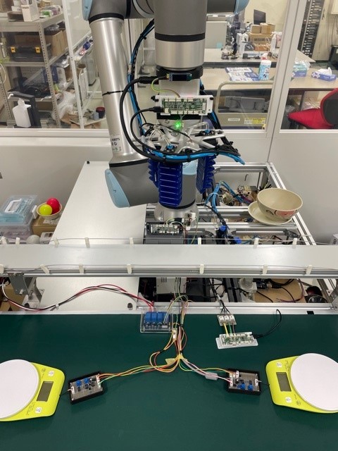 - アームロボットUR10eのピックアンドプレース実験装置に取り付けた外部機器駆動の例