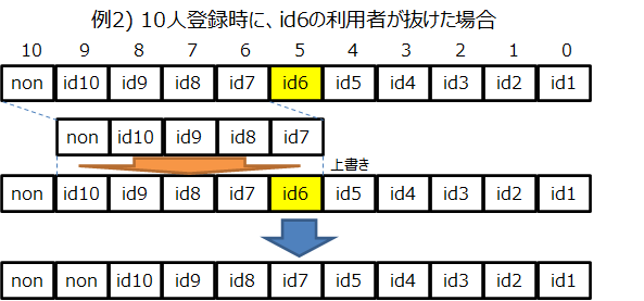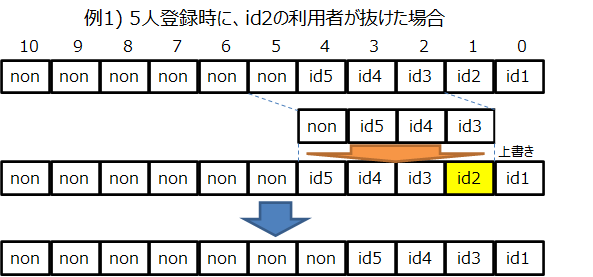 iii) 削除するsocktidが登録されていた番号の次の番号から最初の”non”までのデータを登録されていた番号以降に上書きします。これで、削除が完了します。