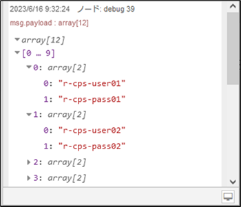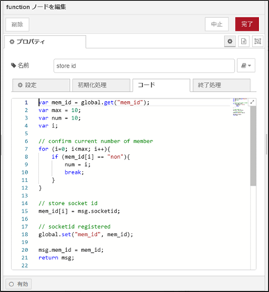 Node-REDの起動直後に、global.mem_id=[“non”, “non”, “non”, “non”, “non”, “non”, “non”, “non”, “non”, “non”, “non”];のようにすべて”non”を代入します。