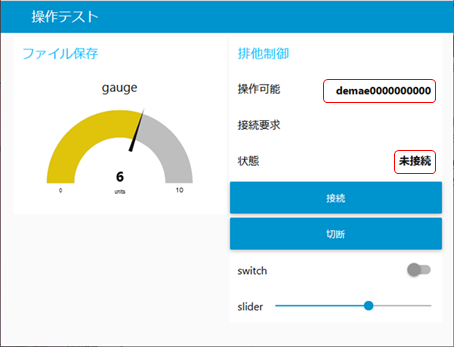 global.socketidの初期値には、ダミーのsocketidである”demae0000000000“を設定します。このダミーのsocketidが、global.socketidに設定されているときは、未接続状態を意味します。状態の表示は、未接続です。