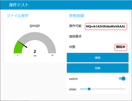 接続中にスライダーやスイッチを押された場合、その端末のmsg.socketidとglobal.socketidを比較し、同じ場合のみ操作を反映します。異なるmsg.socketidの端末から操作しても、出力には反映されず、2秒後に事前の状態に戻ります。