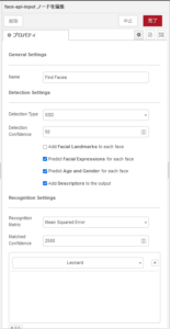 ※顔検出ノード(face-api-input)のパラメータは以下の通りです。状況に合わせて変更してください。