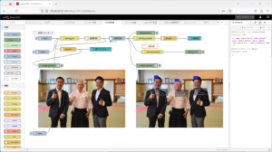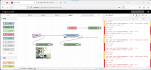 imageノードを使うと、フロー中で画像を確認することができます。debugノードの画像版だと考えると良いです。入力画像(左側)は、取得画像をそのままmsg.payloadで表示、ボックス付き画像(右側)は、顔検出後のmsg.payload.labelled_imgを表示させます。