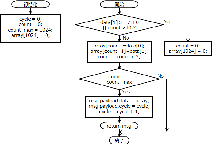 この制御のためにグローバル変数cntを使っています。フローを以下に示します。