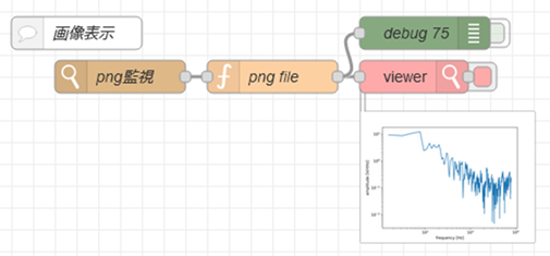 FFTは、python3のライブラリnumpyを使って行います。またライブラリmatplotlibを結果の描画に使用します。描画結果は、ファイルに保存されます。Node-REDでファイルの保存をチェックし追加された画像をフロー画面に表示します。