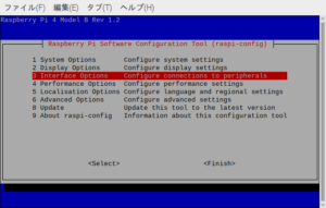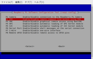 すると、左のようなRaspberry Piの設定画面が表示されます。「インターフェース」のタブを選択します。SSHとVNCの有効ボタンを選択し、OKを押せば、設定は完了です。