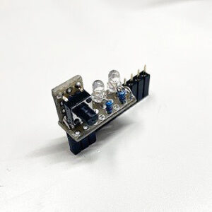 通信状態のモニターのために、LED表示機を作成し、取り付けます。写真のように、ユニバーサル基板を使って工作します。