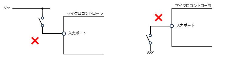 マイクロコントローラーのGPIOポートを入力に設定してボタンの操作を取得する場合、次の点にも注意が必要です。