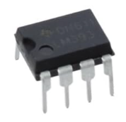 上記の回路例で使用したLM393は、コンパレータの一種で、2つのコンパレータが1つのICに入っています。