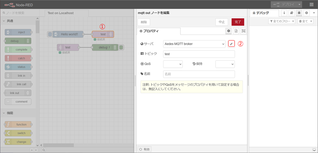 - 1. Aedes MQTT ブローカーのノードをNode-REDに追加