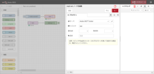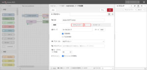 ① MQTT in/outのいずれかをダブルクリックし、プロパティ設定画面を開きます。