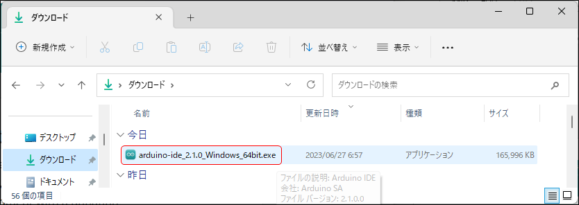 ダウンロードが完了したら、エクスプローラでダウンロードしたファイルを実行してください。