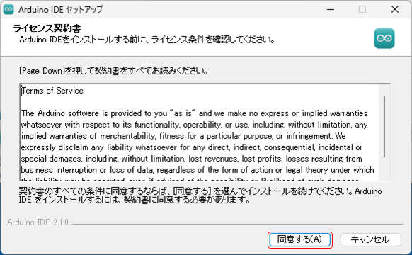 インストーラーが起動するので、“同意する”ボタンをクリックします。