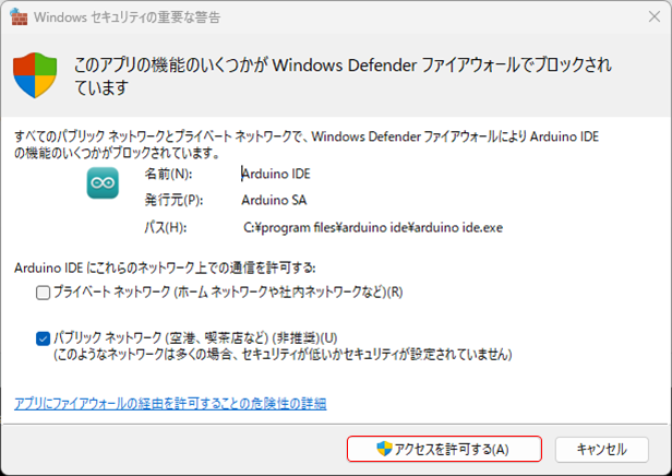 このようなセキュリティソフトによるブロックの警告が表示された場合、“アクセスを許可する”を選択してください。