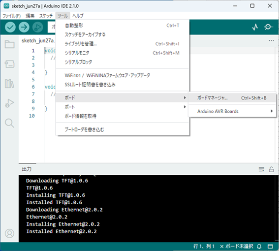 「ツール」→「ボード」→「ボードマネージャ」を開きます。