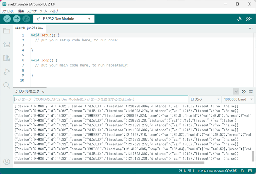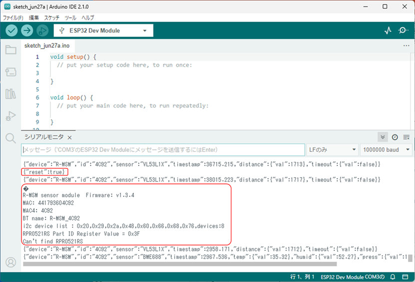 ここでは、ドライバはインストール済みのものとして、① Arduino IDEのインストールと②インストール後の動作確認として、R-MSMとPCを繋ぎ、Arduino IDEのシリアルモニタにデータが出力されるかを確認します。