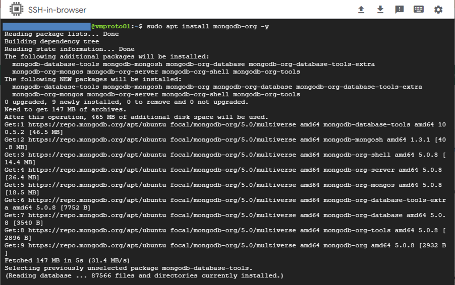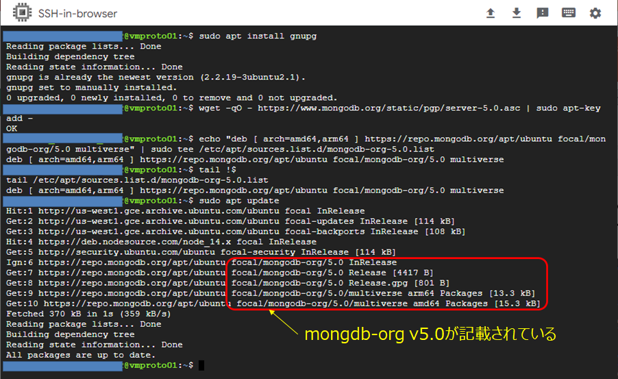 GCPのUbuntu Ver. 20.04 LTSへのMongoDB Ver.5.0のインストールを行います。
