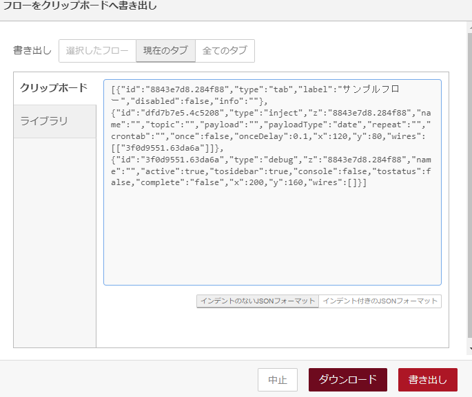 ・「書き出し」をクリックすると、フローがクリップボードにコピーされます。