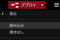 2)保存したフローファイルを読み込むには、右上のメニューから「読み込み」を選択します。