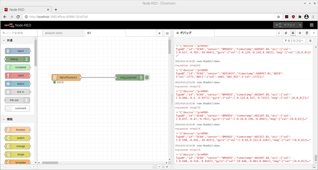 Node-REDにBTポートで受信したデータを読み込む方法を紹介します。