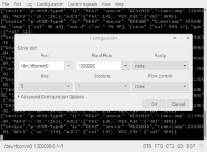 $ gtkterm -p /dev/rfcomm0 -s 1000000