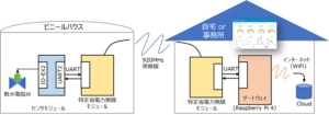 - ビニールハウス:センサモジュールとLPWA通信モジュールを設置