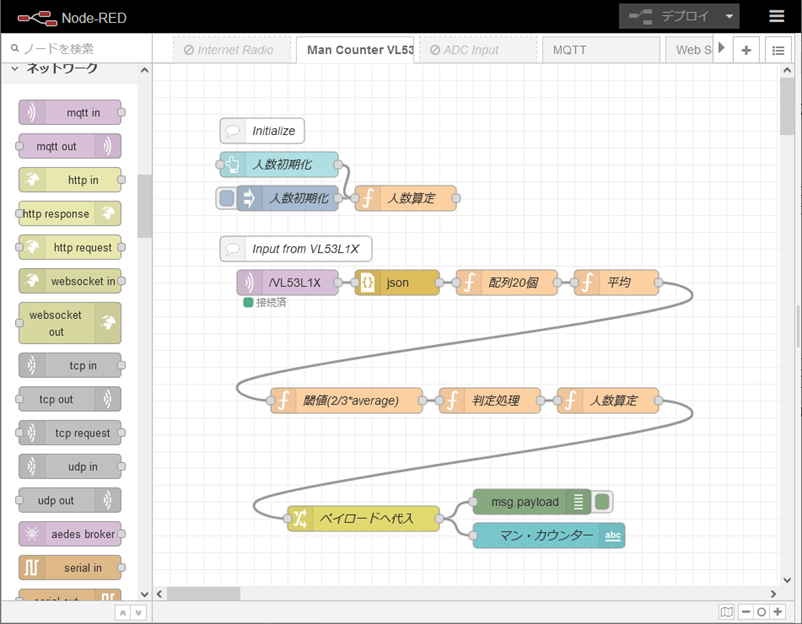 Node-REDのfunctionブロックで記載するプログラムを以下に示す。