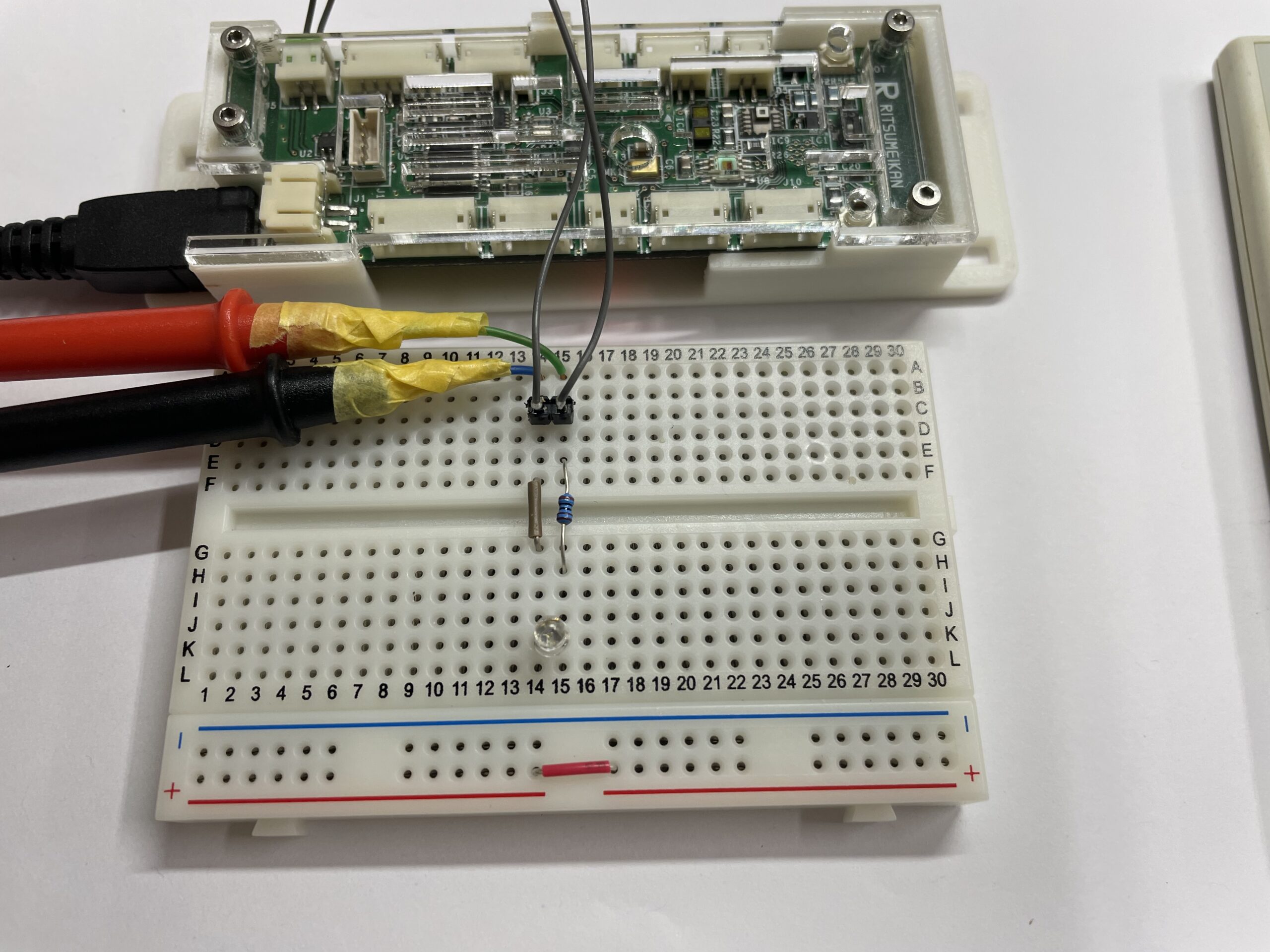 1)DAC出力ポートの利用:(実験として)LED回路を接続する