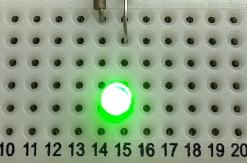 この回路でのLEDの順方向電圧(VF)を下回るとLEDには電流が流れないため点灯しません。