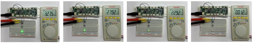 それぞれのインジェクトノードのボタンをクリックすると、その設定した電圧でLEDへの給電電圧が変化しています。