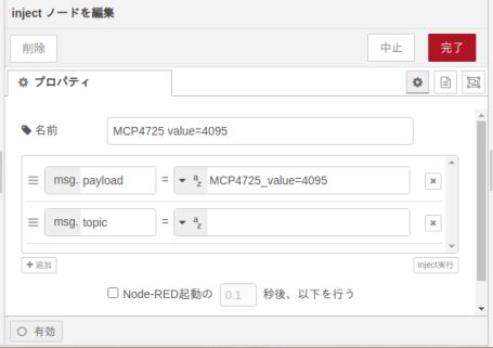 最大値の4095以外にも、中間値の3475, 2850, そして0の値をコマンドで送信するノードを追加してみましょう。