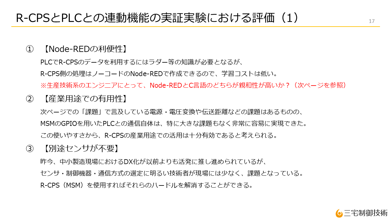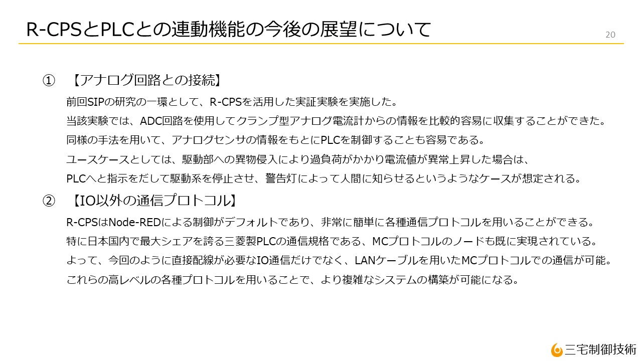 「R-CPSとPLCとの連動機能の実証実験の評価」 報告書