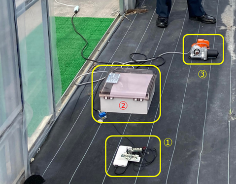 いちご農家でクラウドからのモータの動作実験を行いました。スマートフォンからの指示でモータのON/OFFの確認ができました。