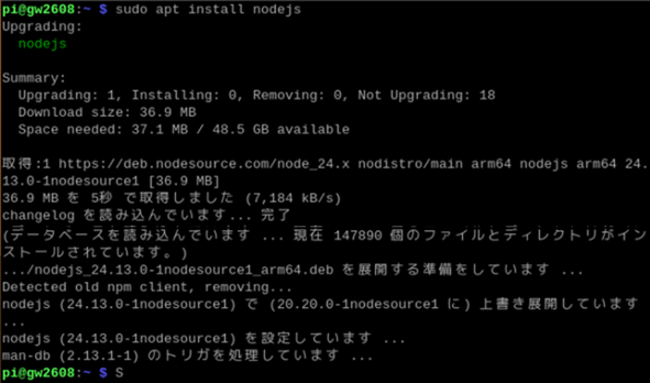 この時点での最新LTS版であるv24.13.0に変わっています。
