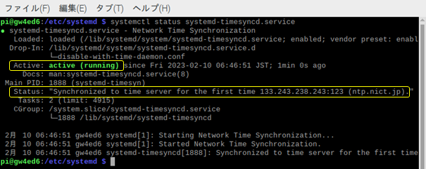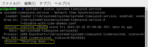 次の様な表示の場合は、こちら(タイムサーバーの設定)をみて、時刻同期サービスを再起動してください。