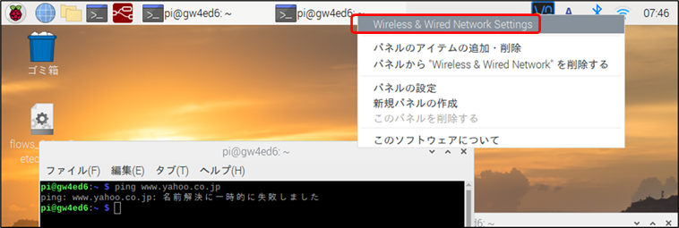 画面の右上のネットワークのクリックして、ポップアップメニューがでたら、Network Settingsを選びます。