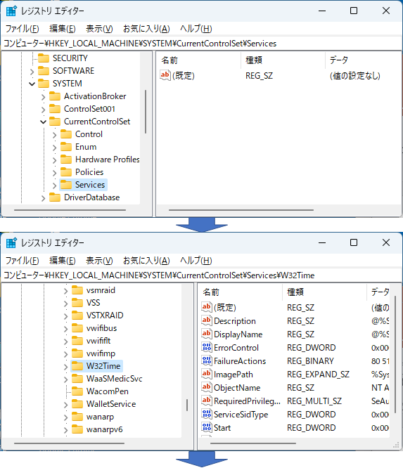 3) w32timeサービスの起動:日付と時刻を同期するためのサービスを起動します。