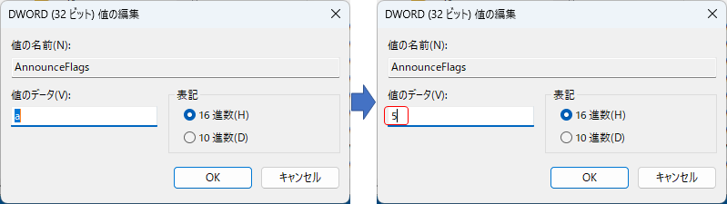 設定値0x5は、「権限のある時刻サーバとして公開する」という設定になります。