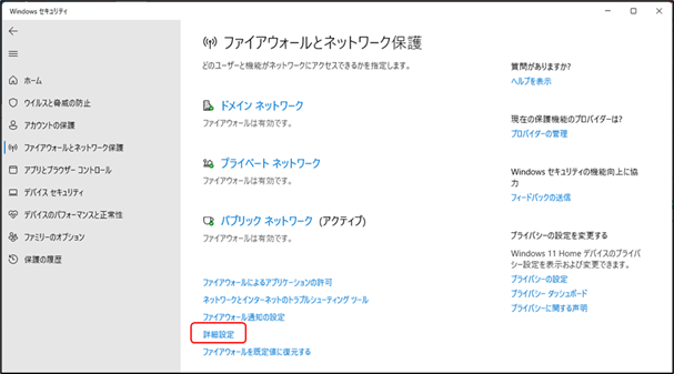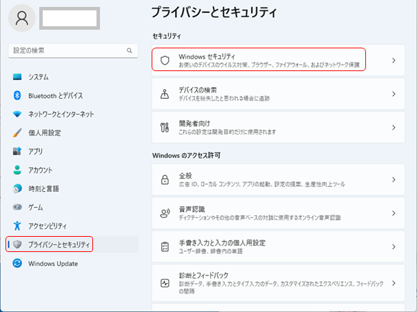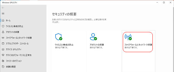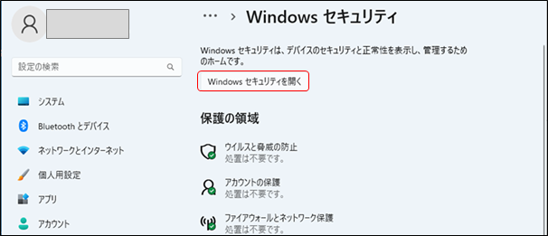 ④「ファイアウォールとネットワークの保護」をクリックします。