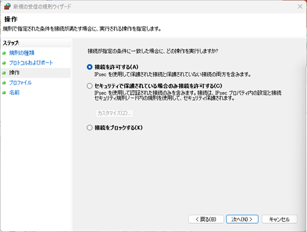 ⑨ 「接続を許可する」を選択します。「次へ」を押します。