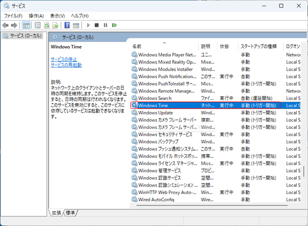 ② サービス一覧の中から、「Windows Time」を探して、ダブルクリックします。