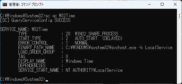 ④ コマンドプロンプトでサービスの設定を確認できます。