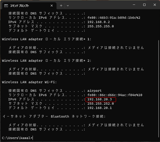 ① PDHから時刻合わせにいくPCのIPアドレスを調べます。